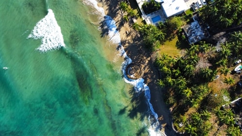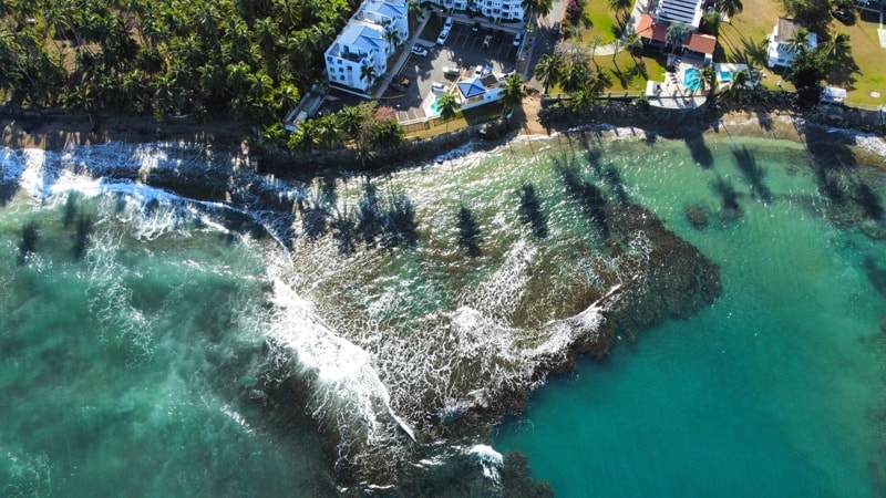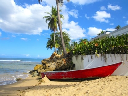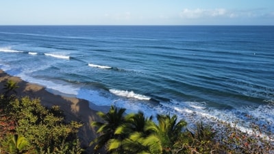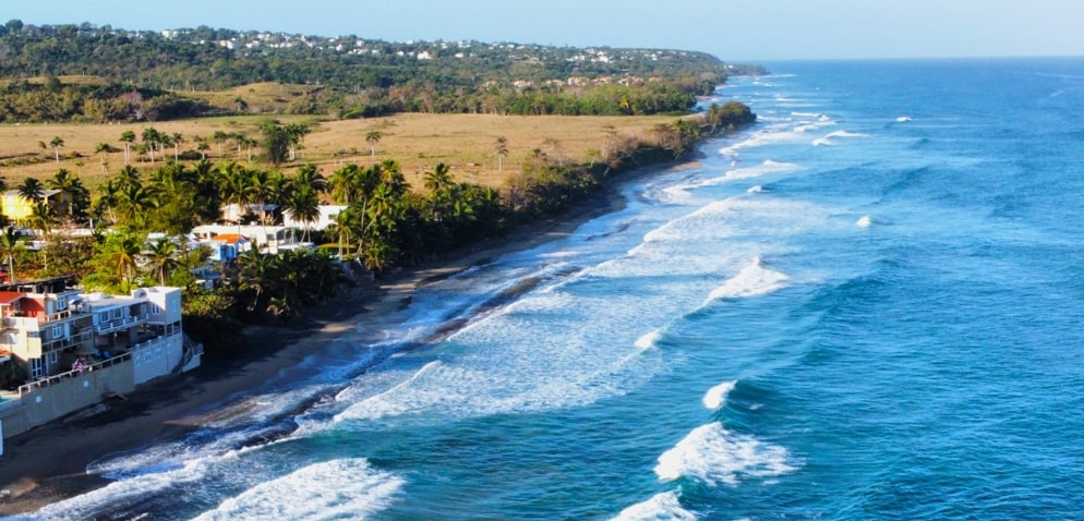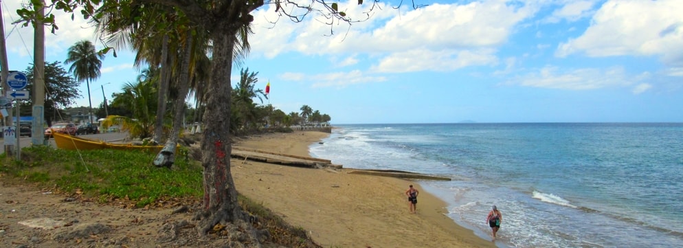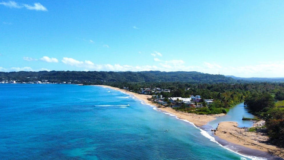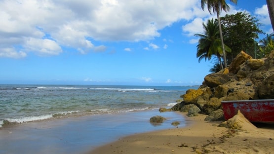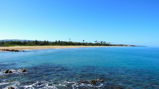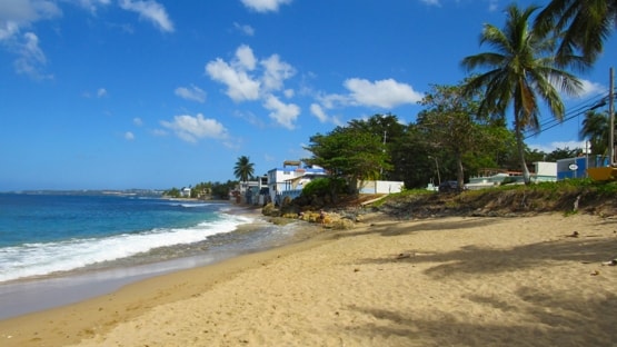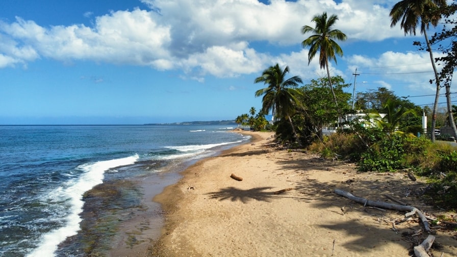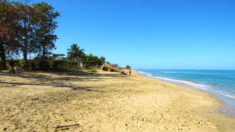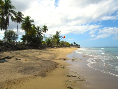 Continuing on from Lohans Beach, the coastline stretches westward to reach the mouth of the Río Grande river which forms the boundary between Aguada and the town of Rincón. This last beach in Aguada is Playa Río Grande.