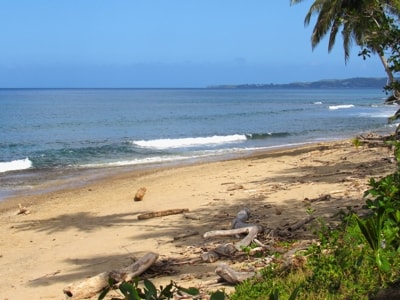 Continuing down from Pico de Piedra, across the Guayabo River and Santi Ponce Channel, we find picturesque Lohans Beach. A curving, sandy beach with shady trees bordering much of its length.