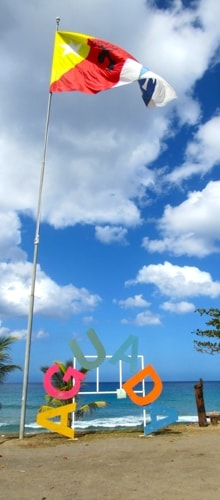 Just where PR Road 441 from the downtown area of Aguada meets the coastal road is the Malecón (Promenade). Overlooking another sandy beach (Guaniquilla Beach), the the centre of the Promenade contains the Letters of Aguada arched below the town's flag.