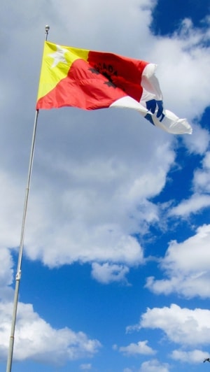 On Calle Colón, the Bandera de Hector completely covers the entrance to the old public car terminal.
