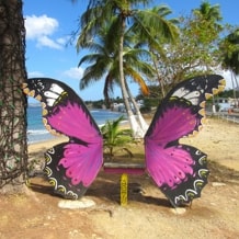 To one side of the flag and Letters, in an area below the palm trees, is a display of works from local artists and artisans (Artisanos de la Costa), while directly across the road is a small plaza dedicated as a historic sanctuary and holding the Monument of the Columbus Cross (Monumento Cruz Colón).