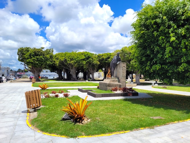 View of statue looking across the Plaza towards the Alcaldía
