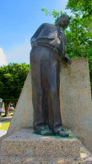 Arturo Ramón Máximo Ortiz del Rivero was born in Naguabo in 1909 and is remembered as a comic actor on stage, radio and TV. He took the stage name Ramón Rivero, and used the nickname "Diplo" after his best known comic character, which he developed while touring theatres throughout Puerto Rico. The statue of Rivero shows him as "Diplo" and manages to capture his comic character in its stance.