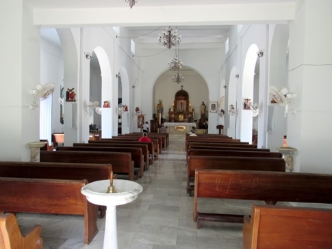 The church consists of a single nave with two side aisles with a square apse covered by a brick lanterned dome. Four square clerestory windows help to provide light to the main part of the church.