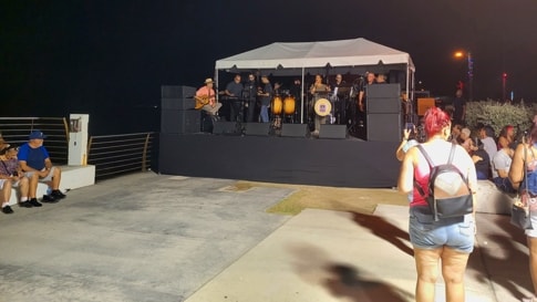 The scenes above show El Malecon during the 2nd day of the Fiestas en Honor de la Virgen del Carmen (Festivities in Honour of the Virgin of Carmen) with the Mayor, on the stage, welcoming everyone at the start of the evening.